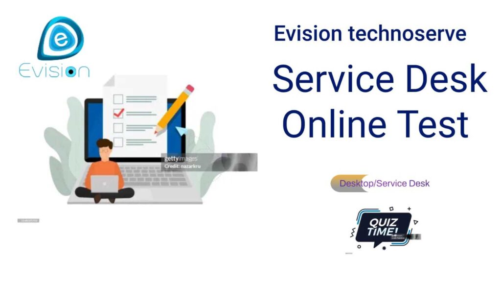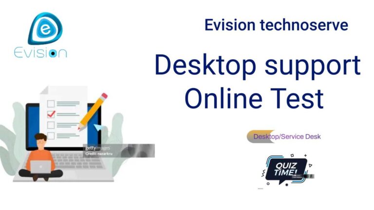 Evision Technoserve Pvt Ltd Title of the document Evision Conduct MCQ based Test. Rules to follow during all online proctored exams: You must use a functioning webcam and microphone No cell phones or other secondary devices in the room or test area Your desk/table must be clear or any materials except your test-taking device No one else can be in the room with you No talking The testing room must be well-lit and you must be clearly visible No dual screens/monitors Do not leave the camera No use of additional applications or internet Notes:- Total No of Question- 100Total Marks – 100Passing Marks- 75 HTML marquee Tag Welcome to Desktop Support Online Test Start Test HTML marquee Tag Welcome to Service Desk Online Test Start Test